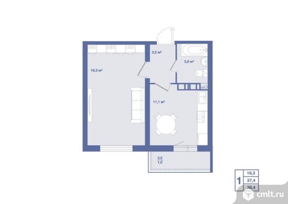 1-комнатная квартира 38,4 кв.м