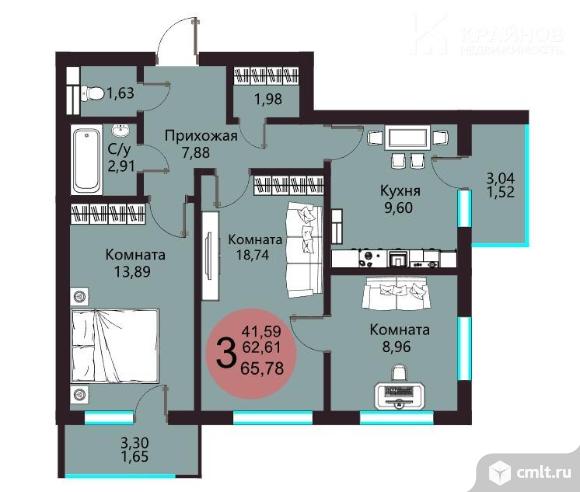3-комнатная квартира 63 кв.м