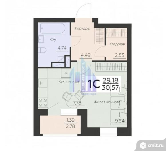 1-комнатная квартира 30,57 кв.м