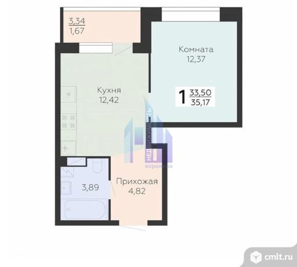 1-комнатная квартира 35,17 кв.м