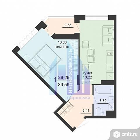 1-комнатная квартира 39,56 кв.м