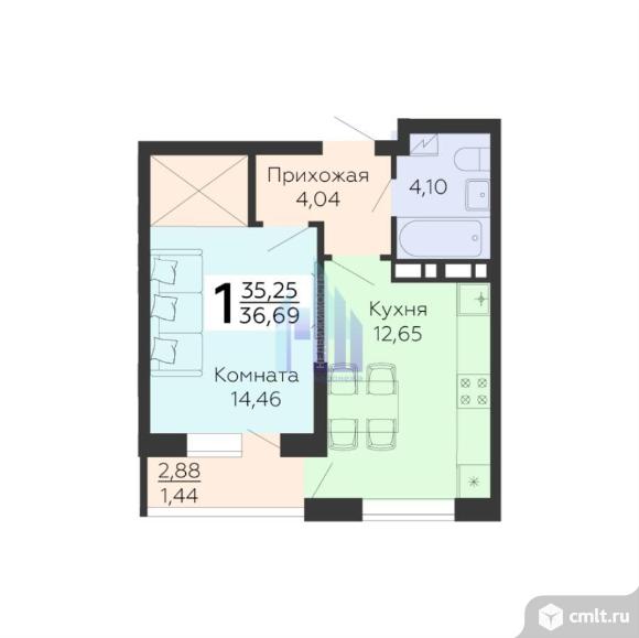1-комнатная квартира 36,99 кв.м