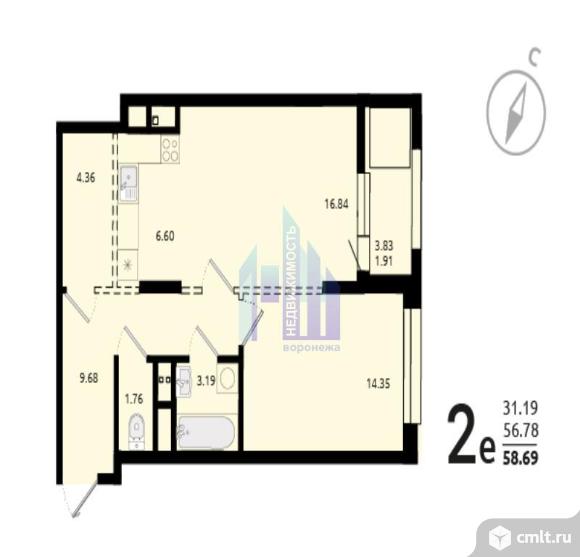 2-комнатная квартира 58,69 кв.м