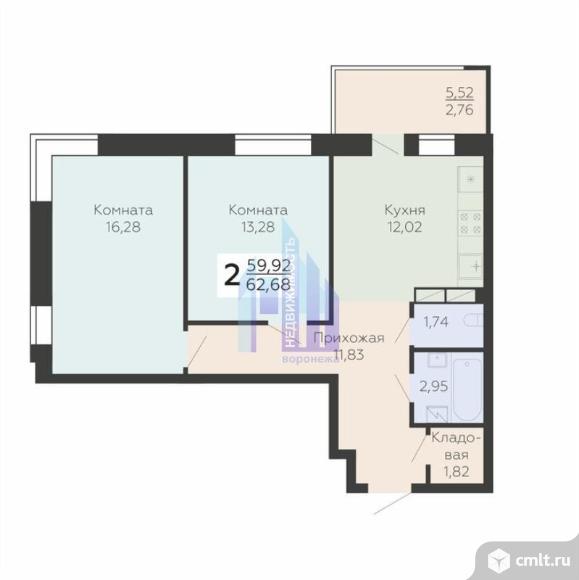 2-комнатная квартира 62,68 кв.м