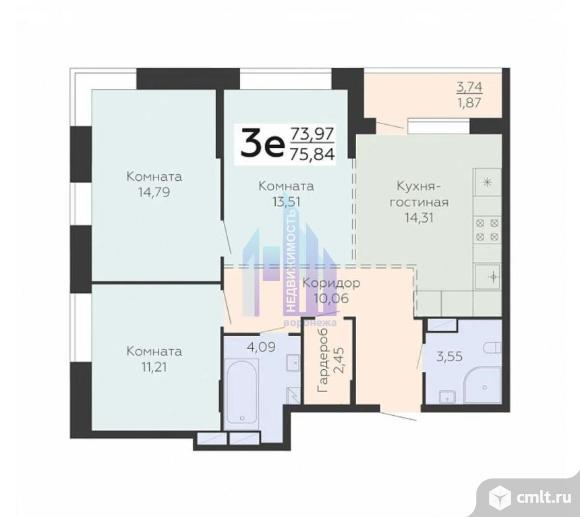 3-комнатная квартира 75,84 кв.м