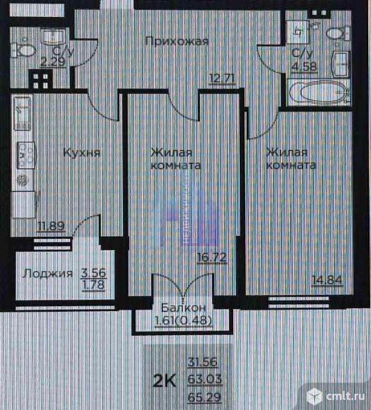 2-комнатная квартира 65,89 кв.м
