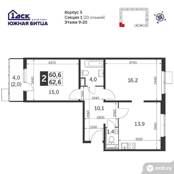 Перейти к актуальным объявлениям рубрики Квартиры. 2-комнатная квартира 61,9 кв.м - Южная Битца