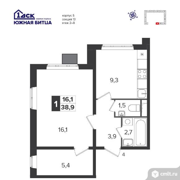Перейти к актуальным объявлениям рубрики Квартиры. 1-комнатная квартира 38,9 кв.м - Южная Битца