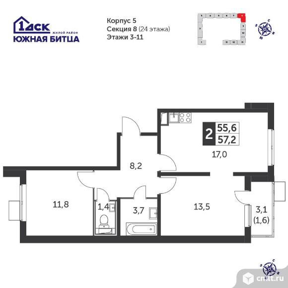 Перейти к актуальным объявлениям рубрики Квартиры. 2-комнатная квартира 56,8 кв.м - Южная Битца