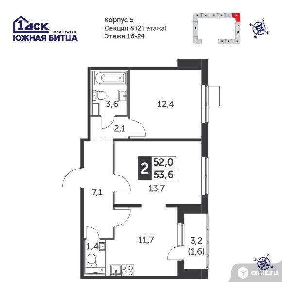 Перейти к актуальным объявлениям рубрики Квартиры. 2-комнатная квартира 53,6 кв.м - Южная Битца
