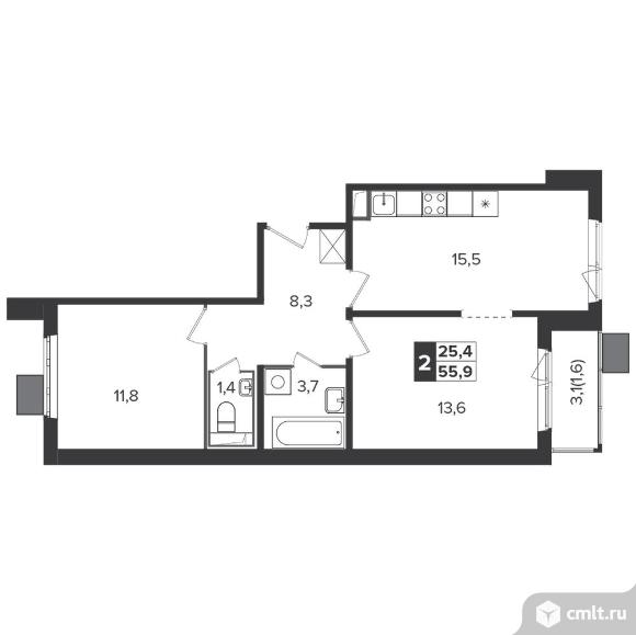 Перейти к актуальным объявлениям рубрики Квартиры. 2-комнатная квартира 55,6 кв.м - Южная Битца