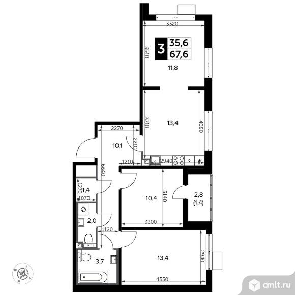 Перейти к актуальным объявлениям рубрики Квартиры. 3-комнатная квартира 68,6 кв.м - Южная Битца