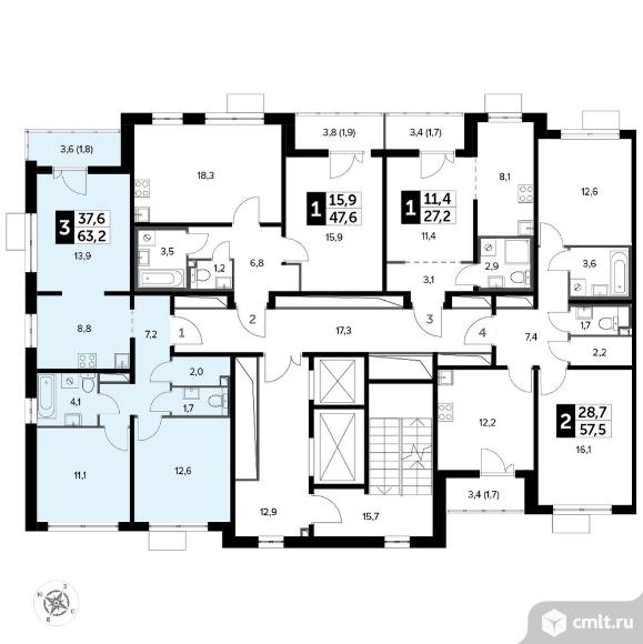 Перейти к актуальным объявлениям рубрики Квартиры. 3-комнатная квартира 63,2 кв.м - Южная Битца