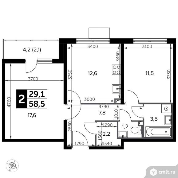 Перейти к актуальным объявлениям рубрики Квартиры. 2-комнатная квартира 59,2 кв.м - Южная Битца