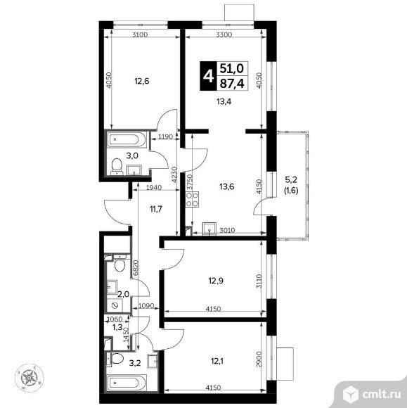 Перейти к актуальным объявлениям рубрики Квартиры. 4-комнатная квартира 89,3 кв.м - Южная Битца