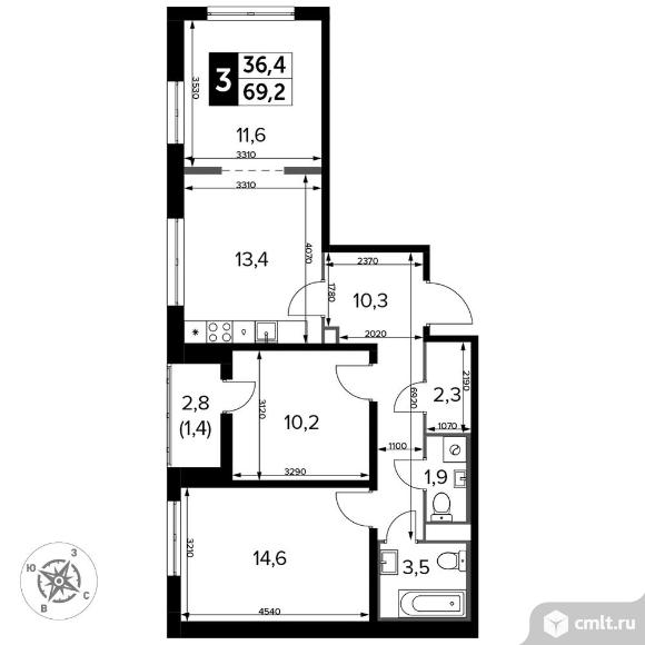 Перейти к актуальным объявлениям рубрики Квартиры. 3-комнатная квартира 70,3 кв.м - Южная Битца