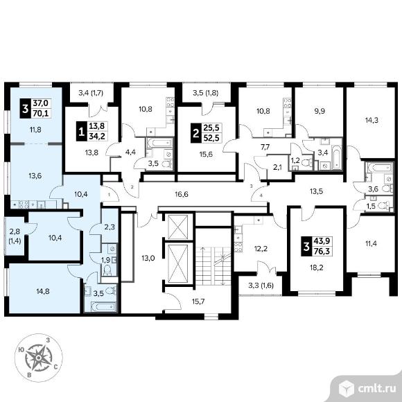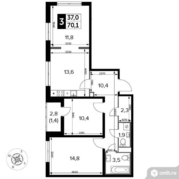 Перейти к актуальным объявлениям рубрики Квартиры. 3-комнатная квартира 71,1 кв.м - Южная Битца