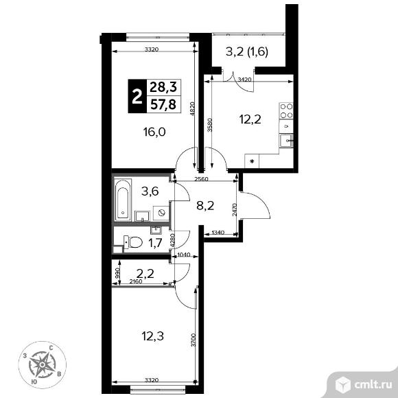 Перейти к актуальным объявлениям рубрики Квартиры. 2-комнатная квартира 58,9 кв.м - Южная Битца