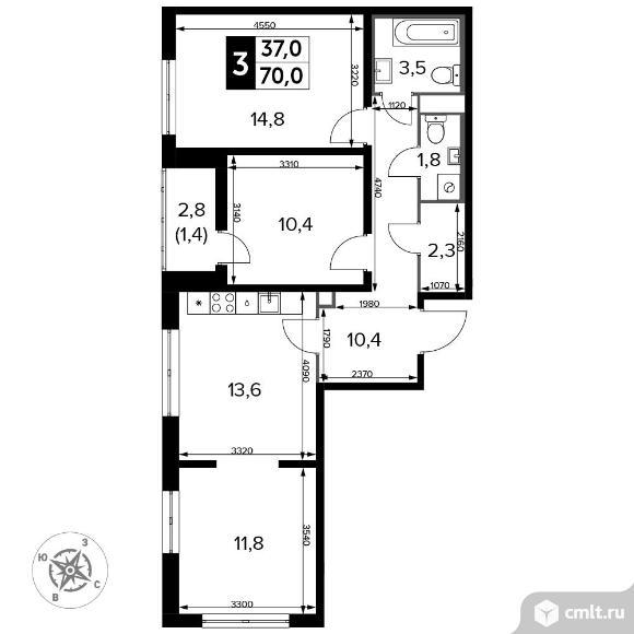Перейти к актуальным объявлениям рубрики Квартиры. 3-комнатная квартира 71,2 кв.м - Южная Битца