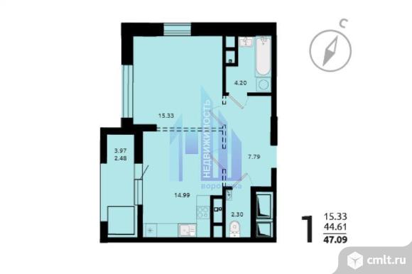 1-комнатная квартира 47,09 кв.м