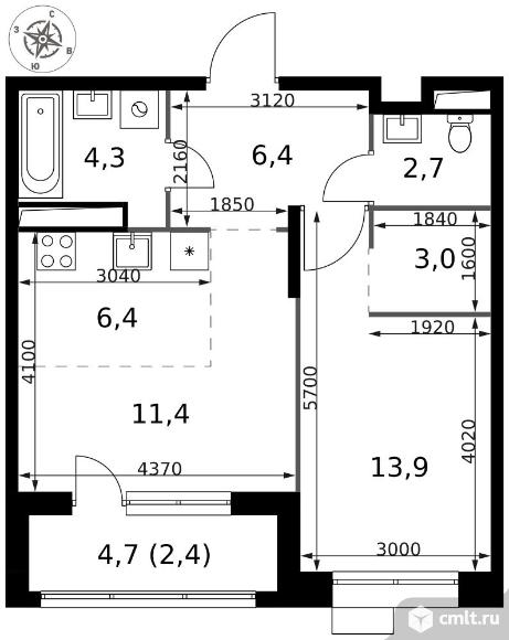 2-комнатная квартира 50,5 кв.м - ЖК "1-й Саларьевский"
