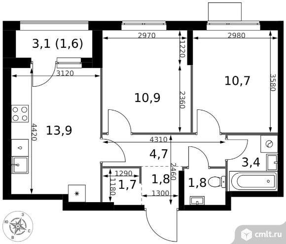 Перейти к актуальным объявлениям рубрики Квартиры. 2-комнатная квартира 50,5 кв.м - ЖК "1-й Измайловский"