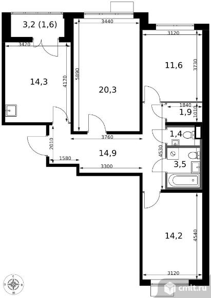 3-комнатная квартира 83,7 кв.м - ЖК "1-й Саларьевский"