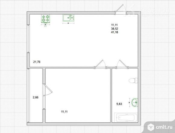 1-комнатная квартира 41,18 кв.м