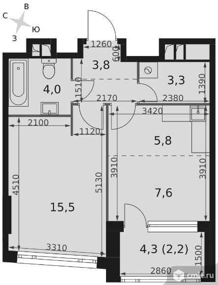 1-комнатная квартира 42,2 кв.м - ЖК "Роттердам"