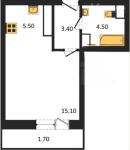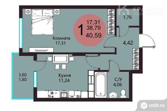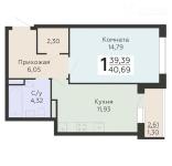 1-комнатная квартира 40,59 кв.м