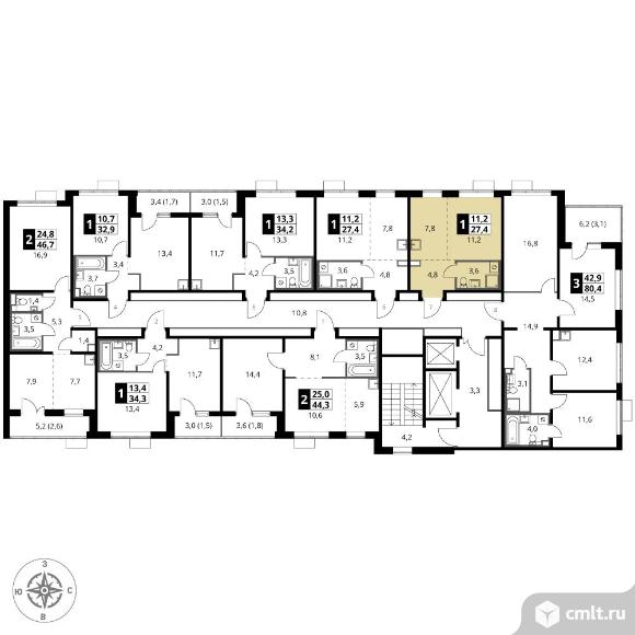 1-комнатная квартира 27,4 кв.м - ЖК "1-й Саларьевский"