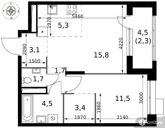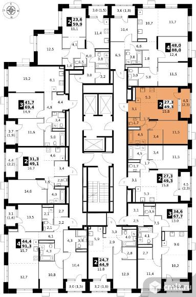 2-комнатная квартира 49,3 кв.м - ЖК "1-й Саларьевский"