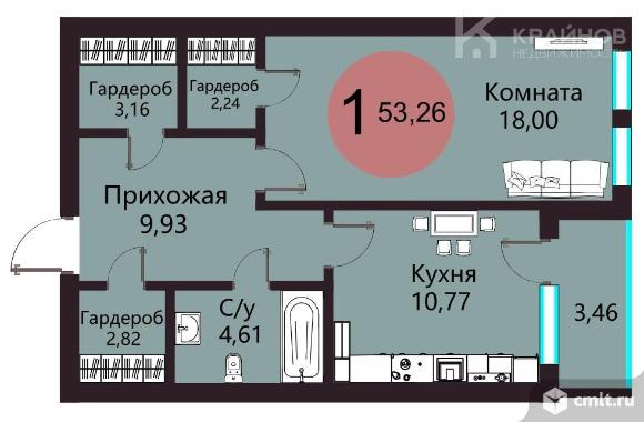1-комнатная квартира 53,26 кв.м