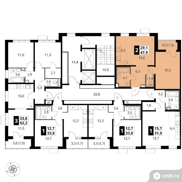 Перейти к актуальным объявлениям рубрики Квартиры. 2-комнатная квартира 47,9 кв.м - ЖК "1-й Южный"