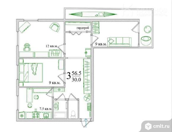 3-комнатная квартира 56,5 кв.м
