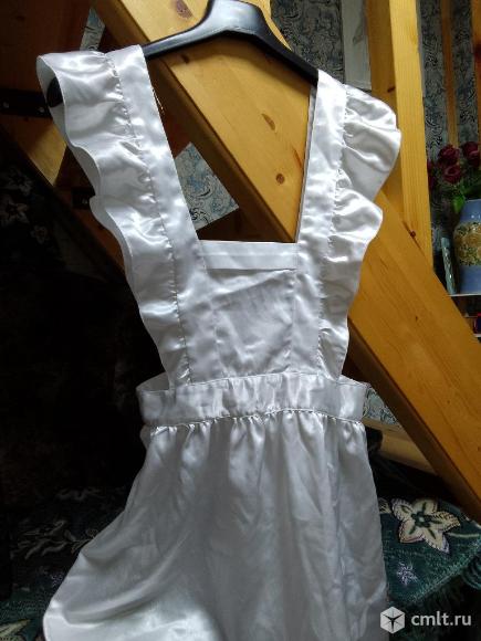 Белый атласный праздничный фартук для школьной формы, примерно на р.158, как новый -150 руб