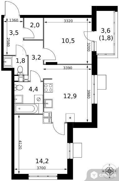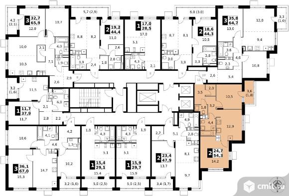 2-комнатная квартира 54,3 кв.м - ЖК "1-й Саларьевский"