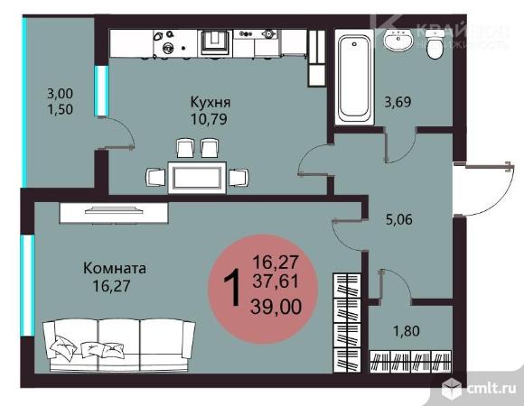 1-комнатная квартира 39,11 кв.м