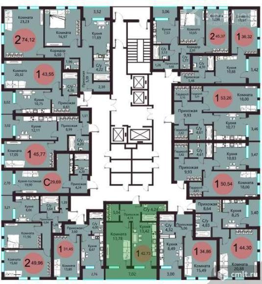 1-комнатная квартира 42,73 кв.м