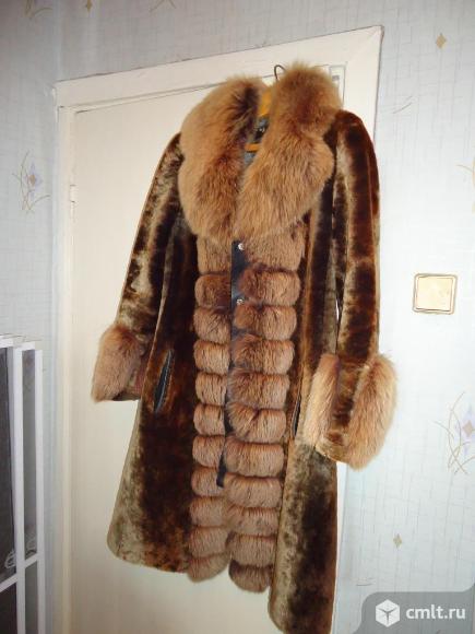 Продаю шубу женскую меховую р-р 46-48 мутон оторочена мехом (натур.)