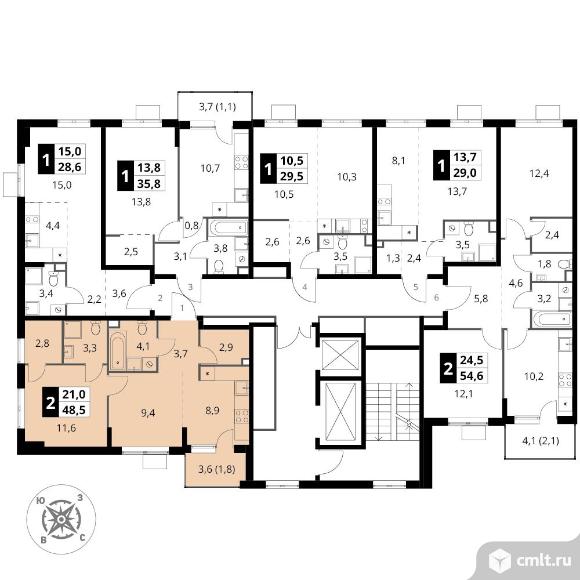 Перейти к актуальным объявлениям рубрики Квартиры. 2-комнатная квартира 48,5 кв.м - ЖК "1-й Шереметьевский"