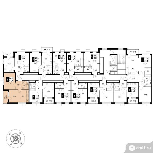 Перейти к актуальным объявлениям рубрики Квартиры. 2-комнатная квартира 42,4 кв.м - ЖК "1-й Шереметьевский"