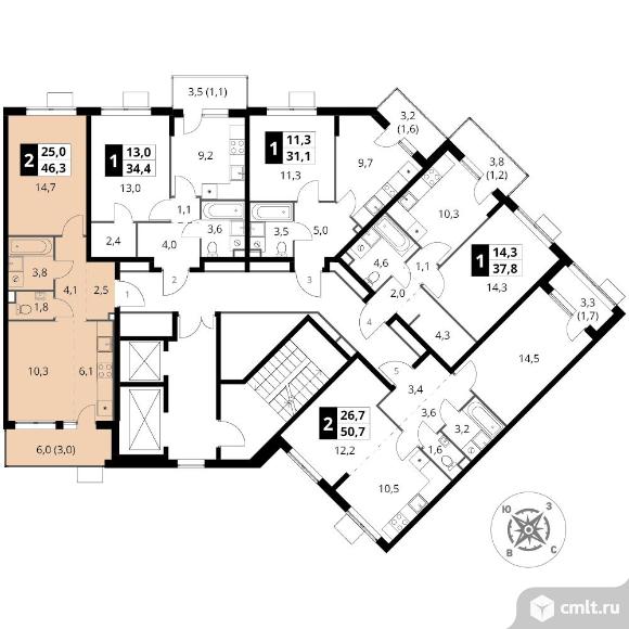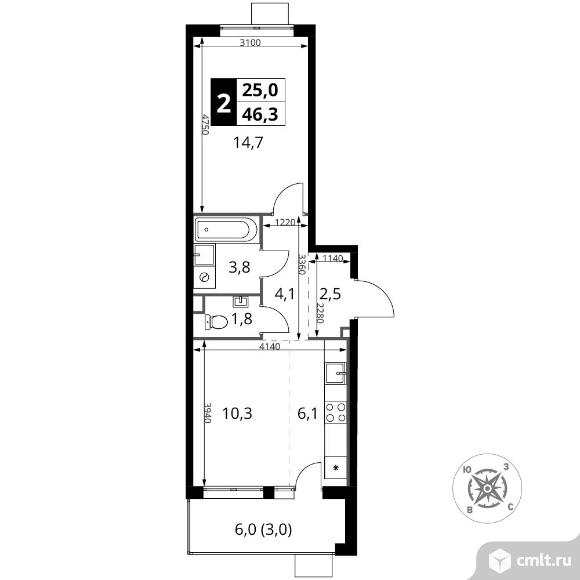 Перейти к актуальным объявлениям рубрики Квартиры. 2-комнатная квартира 46,3 кв.м - ЖК "1-й Шереметьевский"
