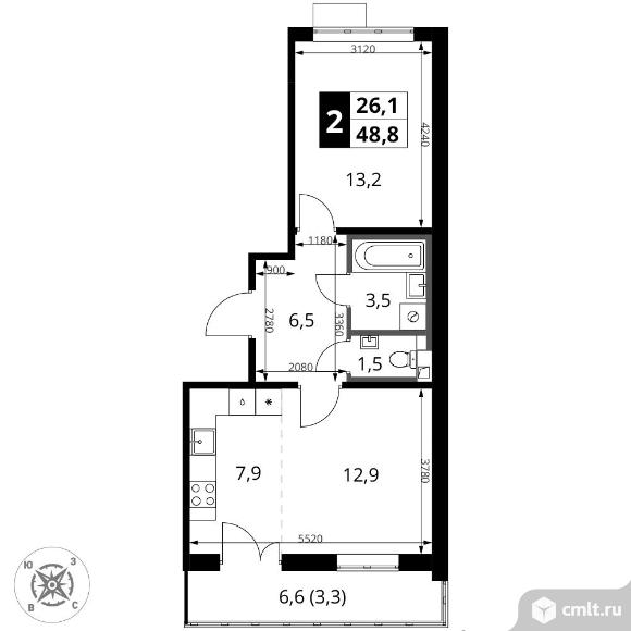 Перейти к актуальным объявлениям рубрики Квартиры. 2-комнатная квартира 48,8 кв.м - ЖК "1-й Шереметьевский"