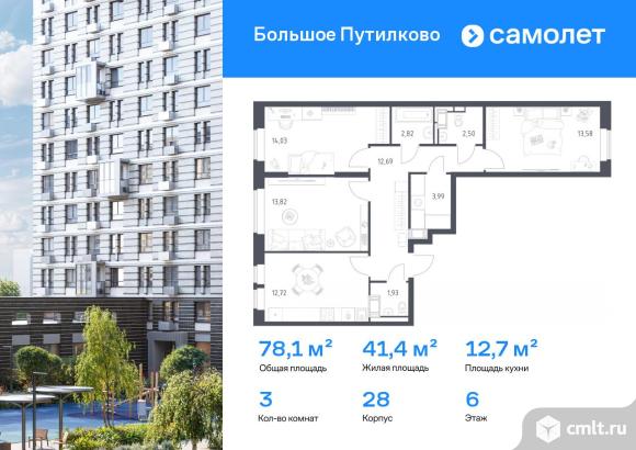 Строим кварталы для жизни с заботой о будущем. Предлагается 3-комнатная квартира комфорт-класса 78,08 кв.м в корпусе 28 на 6 этаже, в ЖК «Большое Путилково»