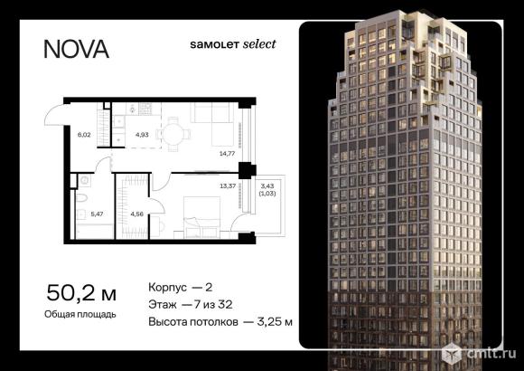 Предлагается 1-комнатная квартира премиум-класса 50,15 кв.м в корпусе 2 на 7 этаже, в ЖК «NOVA»
