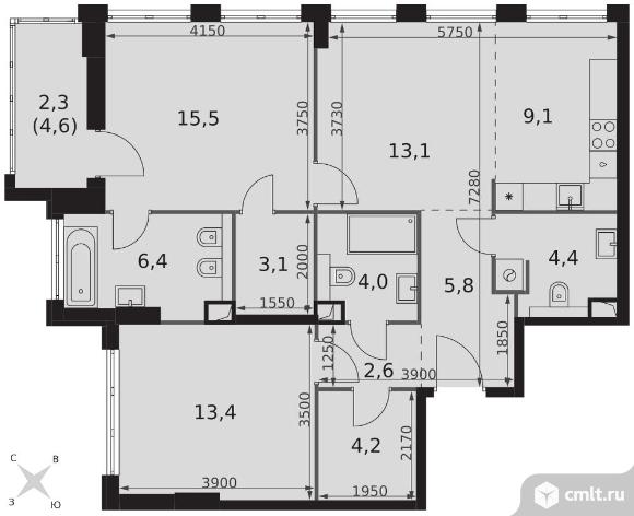 Перейти к актуальным объявлениям рубрики Квартиры. 3-комнатная квартира 83,9 кв.м - ЖК "Sydney City"
