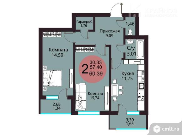 2-комнатная квартира 60,39 кв.м