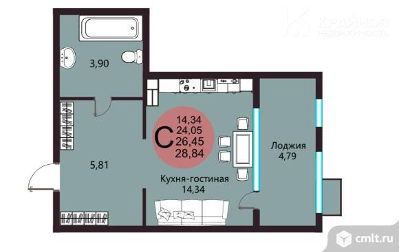 1-комнатная квартира 26,45 кв.м