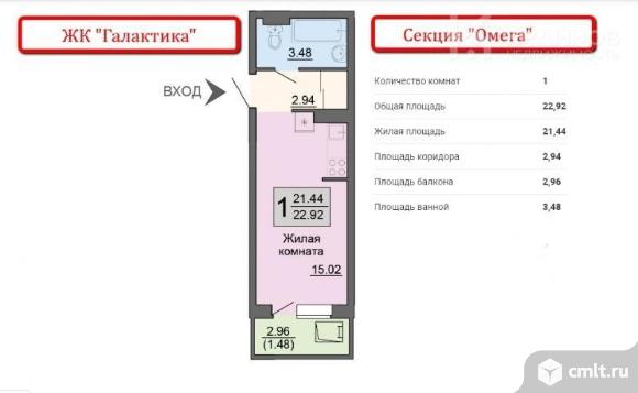1-комнатная квартира 22,9 кв.м